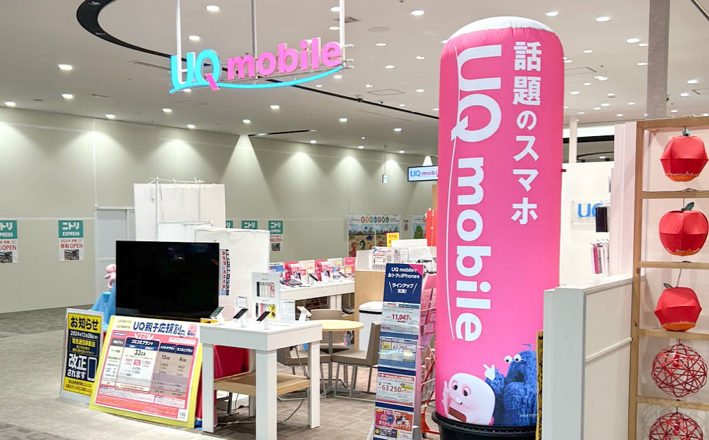 UQモバイル取扱店〒864-0033 熊本県荒尾市緑ヶ丘1丁目1-1 ゆめタウンシティモール内2F